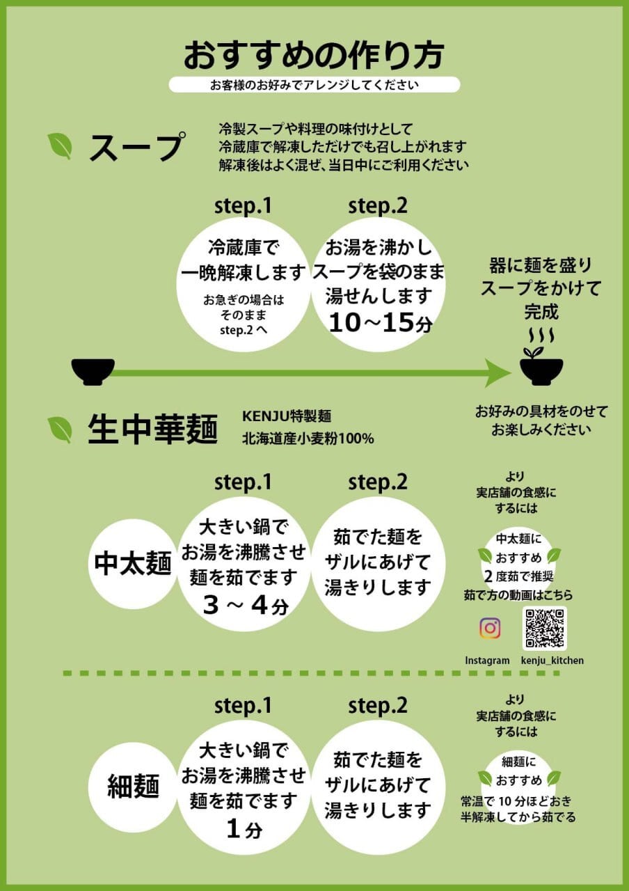 〇ラーメンとして召し上がる場合は、別売りの「KENJU麺」をお買い求めください。